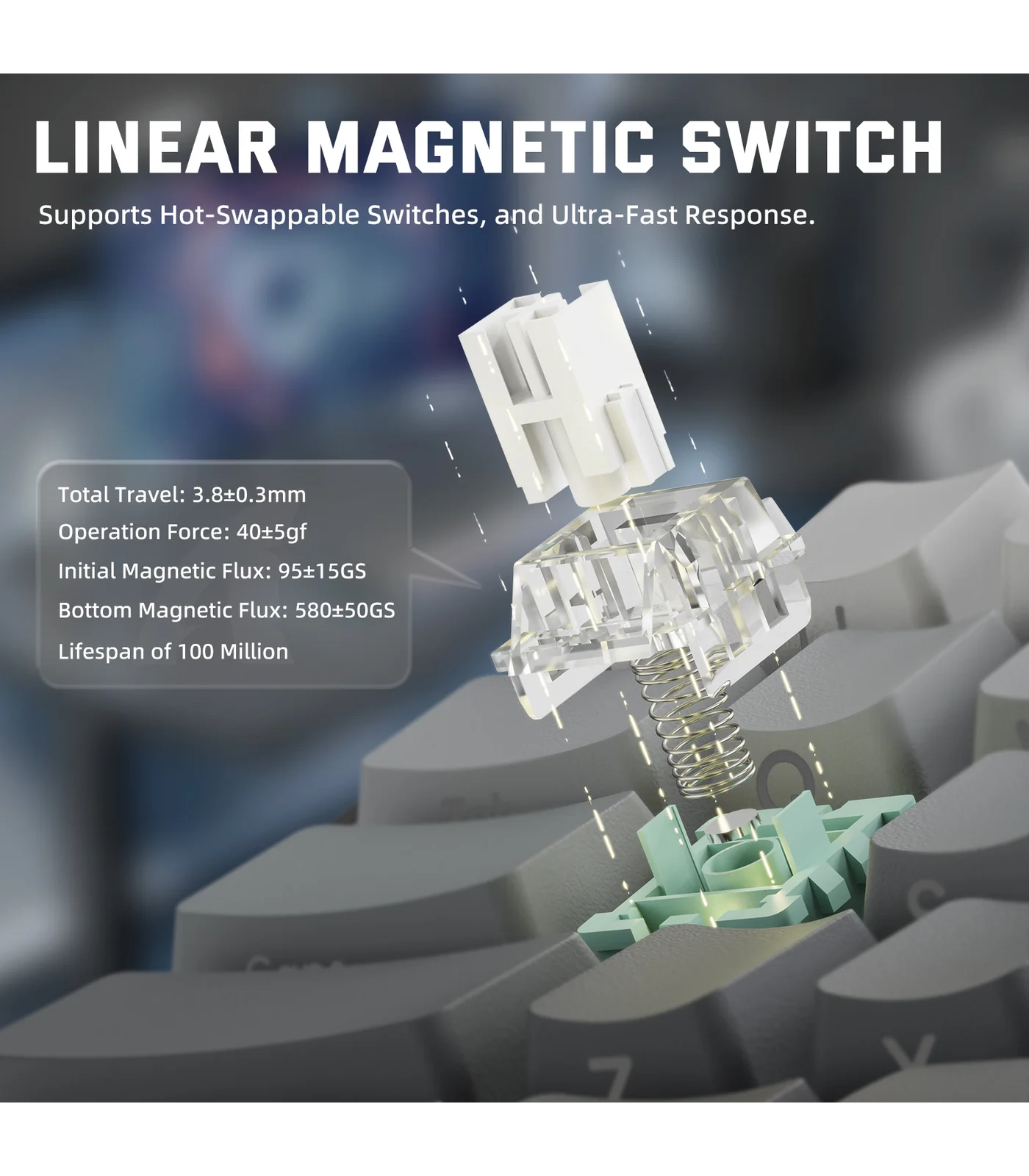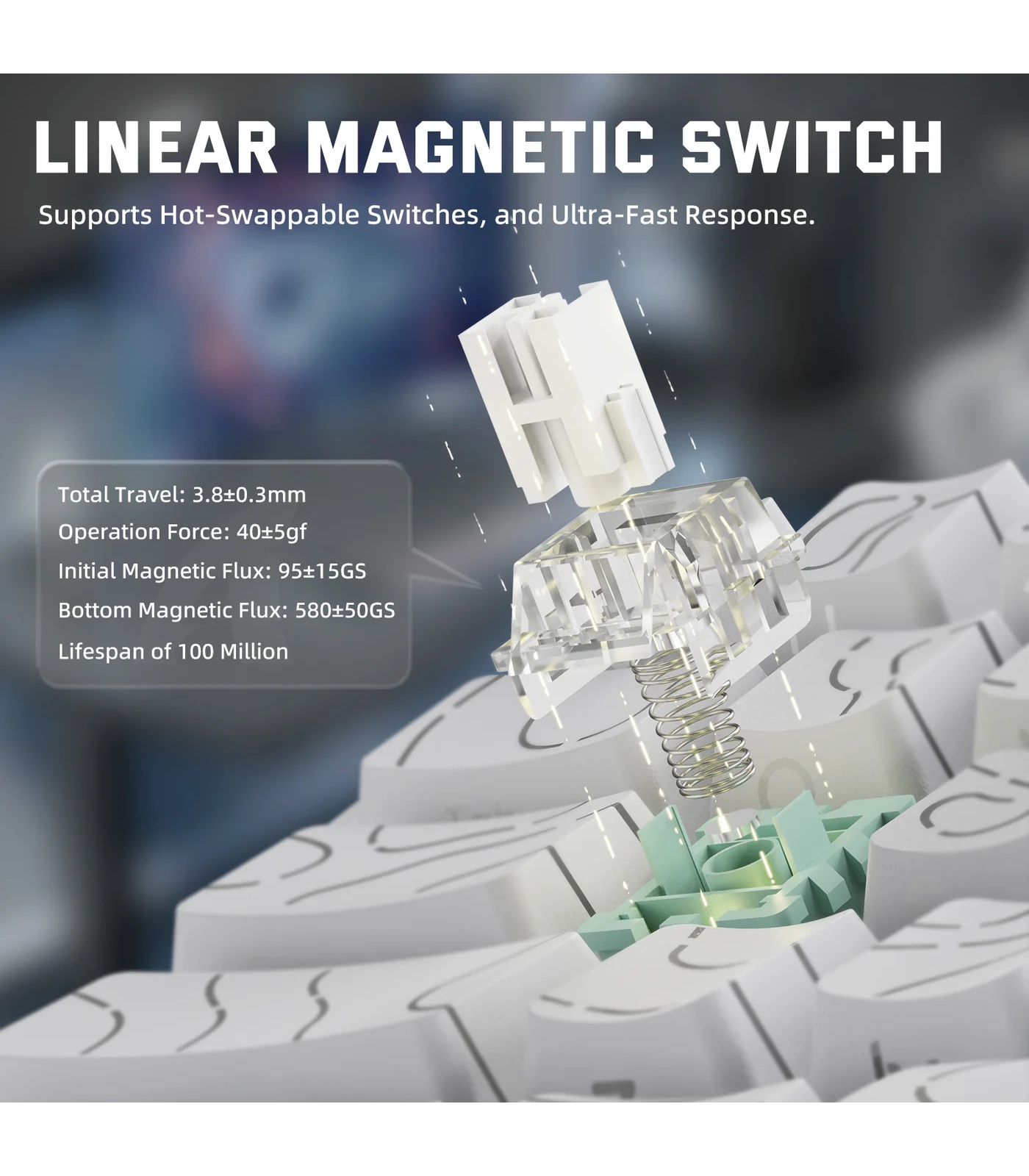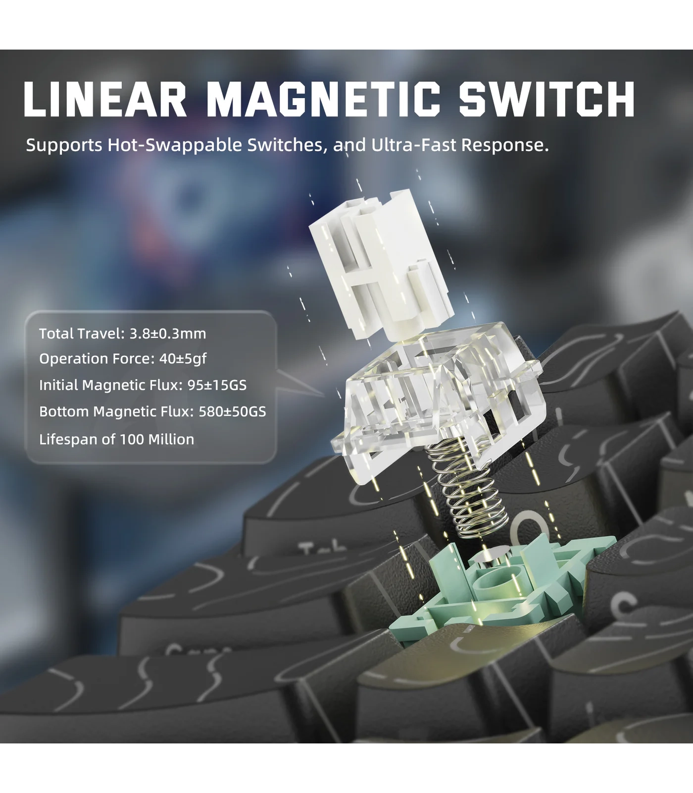 تتميز اللوحة بدقة تفعيل تصل إلى 0.01 مم بدون منطقة ميتة، مما يسمح بإعادة تعيين المفتاح فور رفع الإصبع، ويوفر تحكمًا دقيقًا وسرعة استجابة عالية في ألعاب FPS وMOBA وغيرها من الألعاب التي تتطلب أداءً فوريًا.