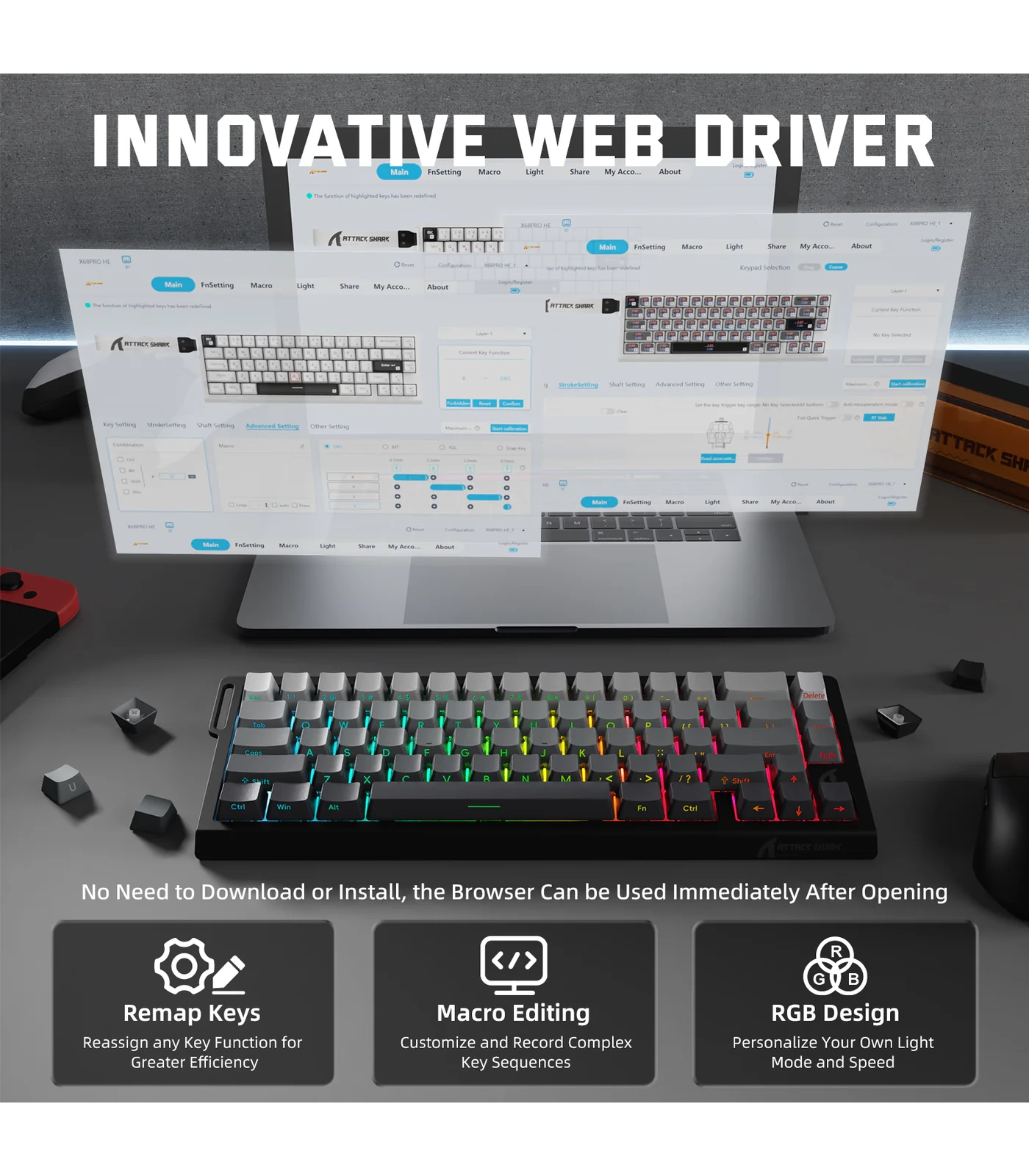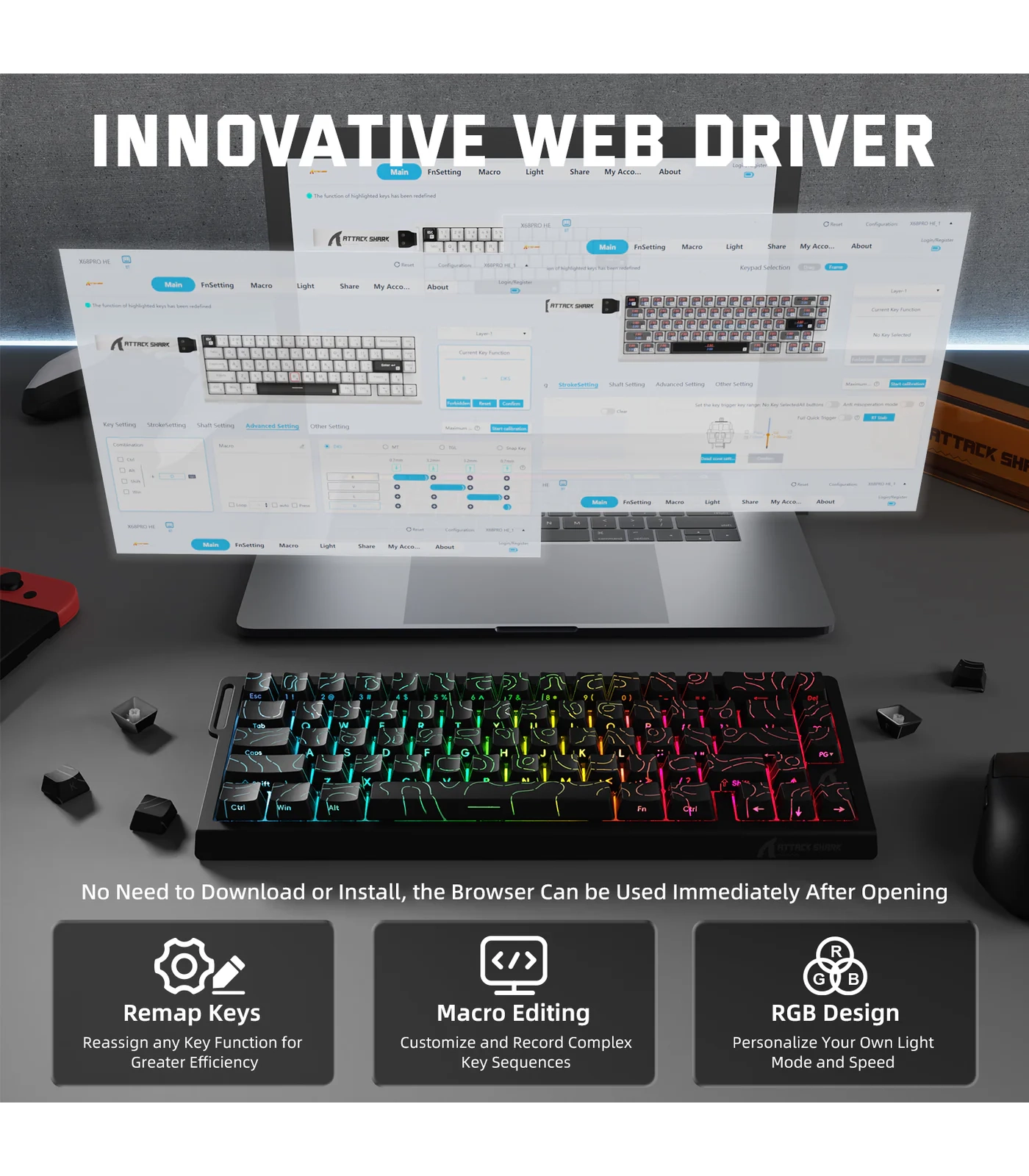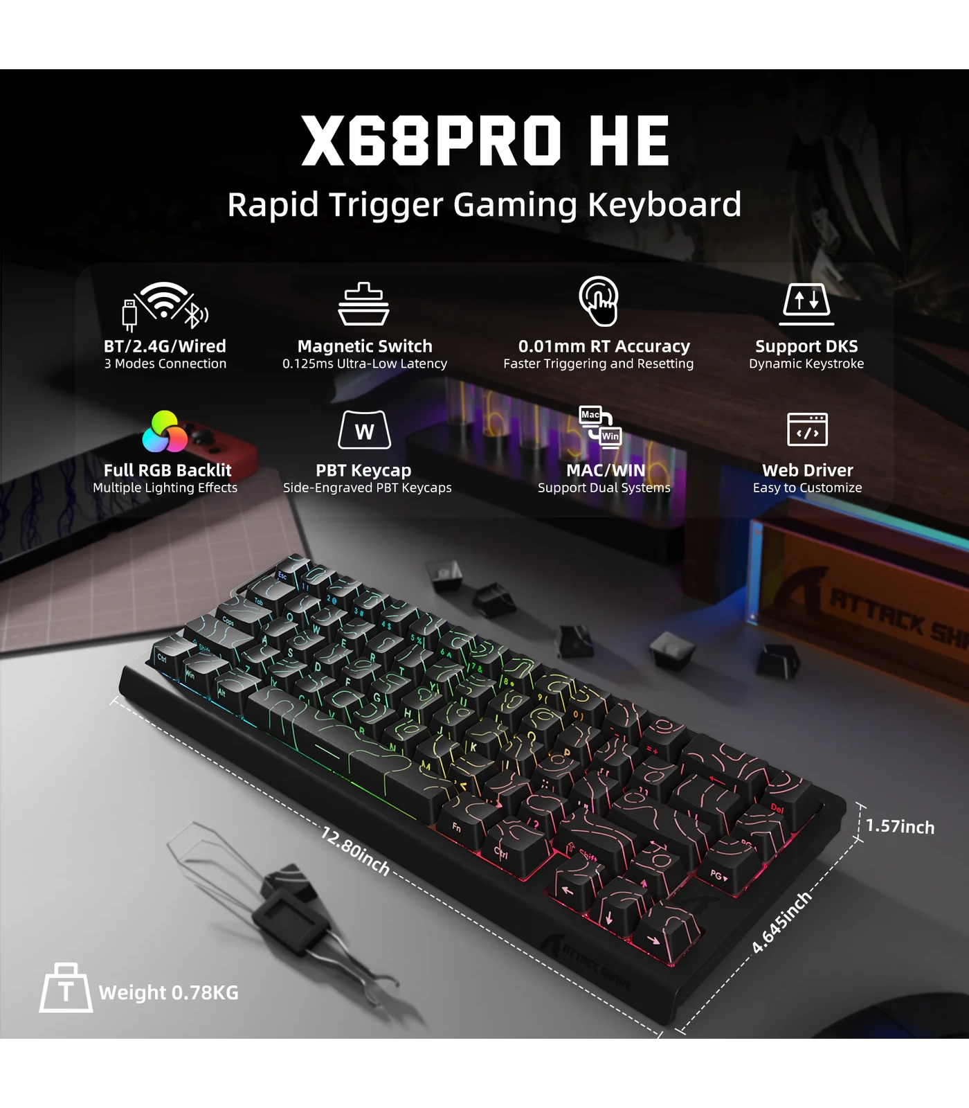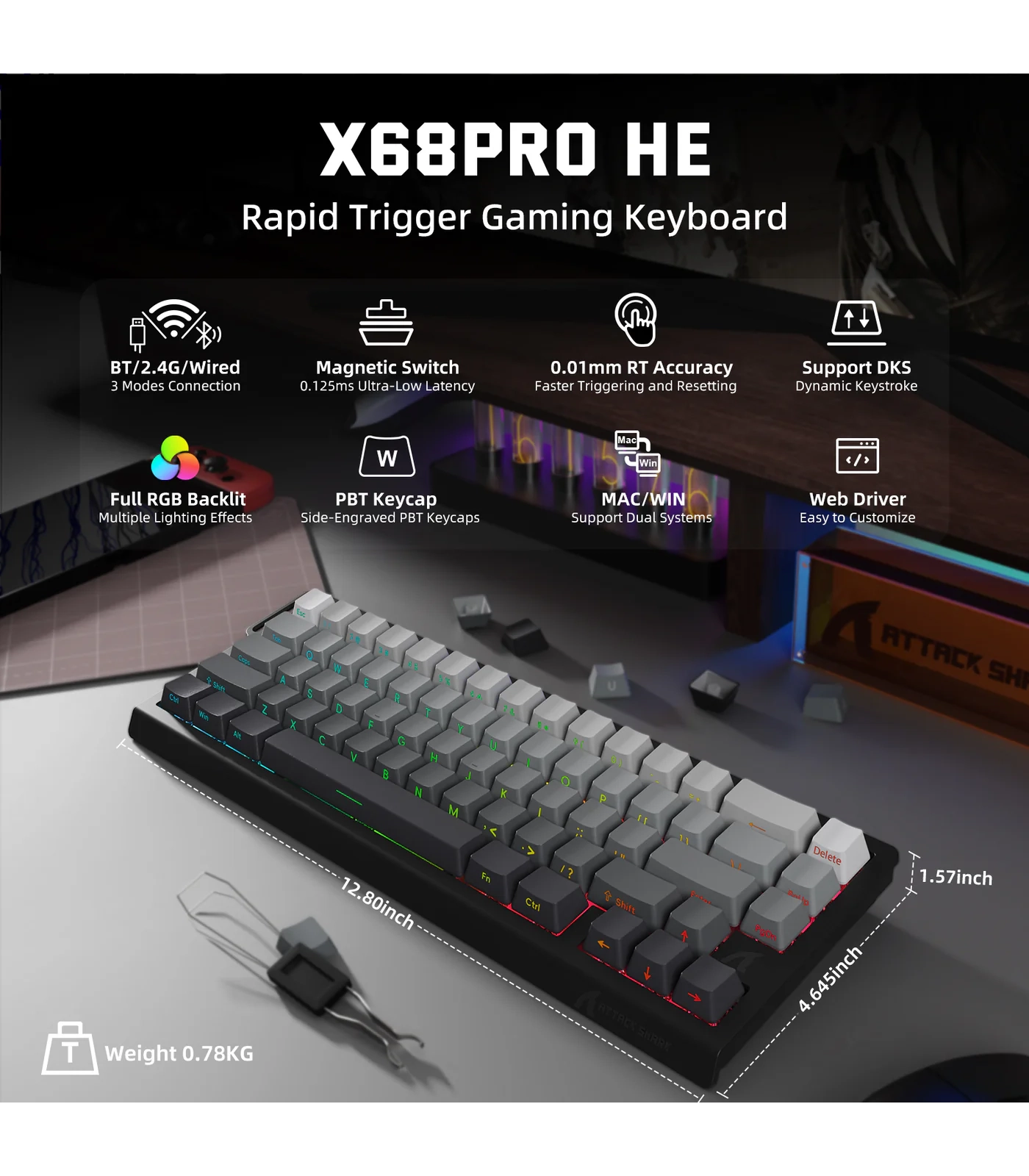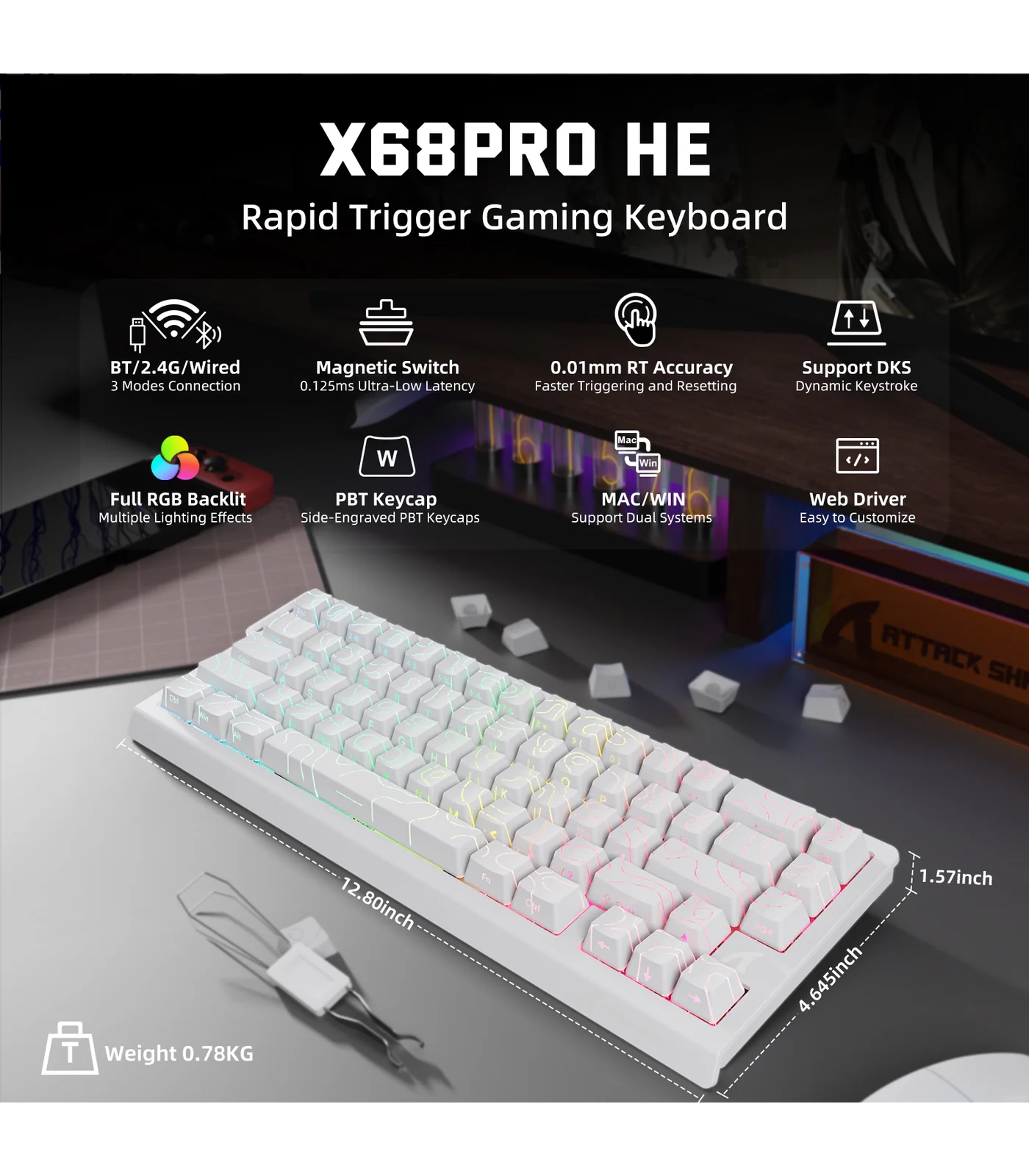 ATTACK SHARK X68PRO HE – Wireless Rapid Trigger Magnetic Keyboard