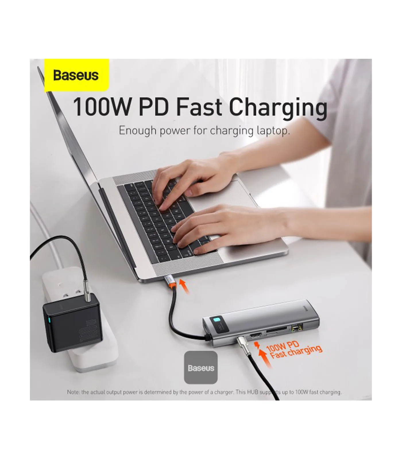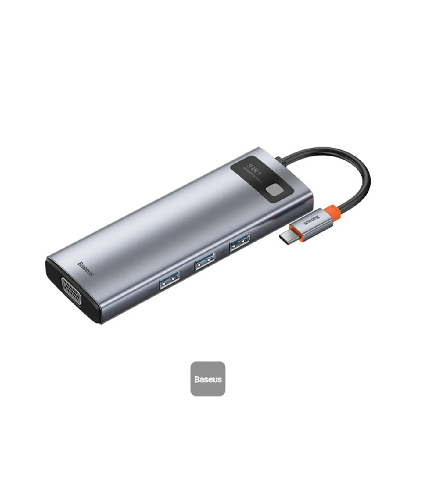 Baseus 9‑in‑1 USB‑C Hub Metal Gleam Series Docking Station Adapter هي هَب متقدم متعدد الوظائف مصمم لتوسيع قدرات التوصيل في الأجهزة التي تحتوي على منفذ USB‑C مثل MacBook Pro، Surface Pro، iPad Pro، وأجهزة Type‑C الأخرى. يوفر هذا الهَب تسعة منافذ متنوعة في وحدة واحدة أنيقة مصنوعة من معدن متين يمنحها قوة وتحمل وملاءمة عالية للاستخدام اليومي أو أثناء السفر.