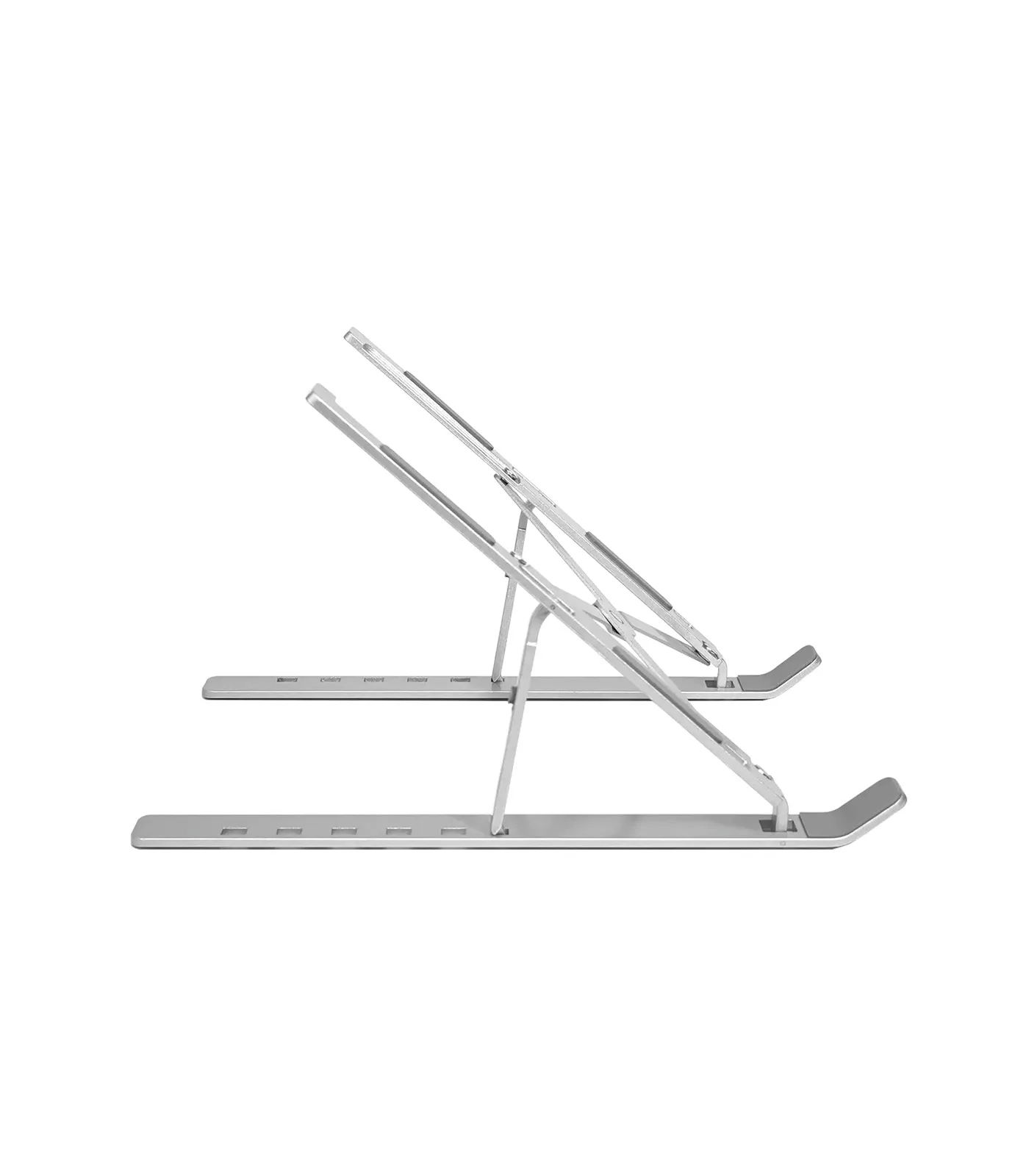 يحتوي الحامل على عدة مستويات لتعديل الارتفاع، مما يسمح للمستخدم بضبط زاوية اللابتوب حسب مستوى العين، وبالتالي تحسين وضعية الجلوس وتقليل الضغط على الرقبة والظهر. هذه الميزة مهمة جدًا للأشخاص الذين يقضون ساعات طويلة أمام الشاشة، حيث تساعد على تقليل التعب والإجهاد وتحسين الراحة أثناء العمل.
