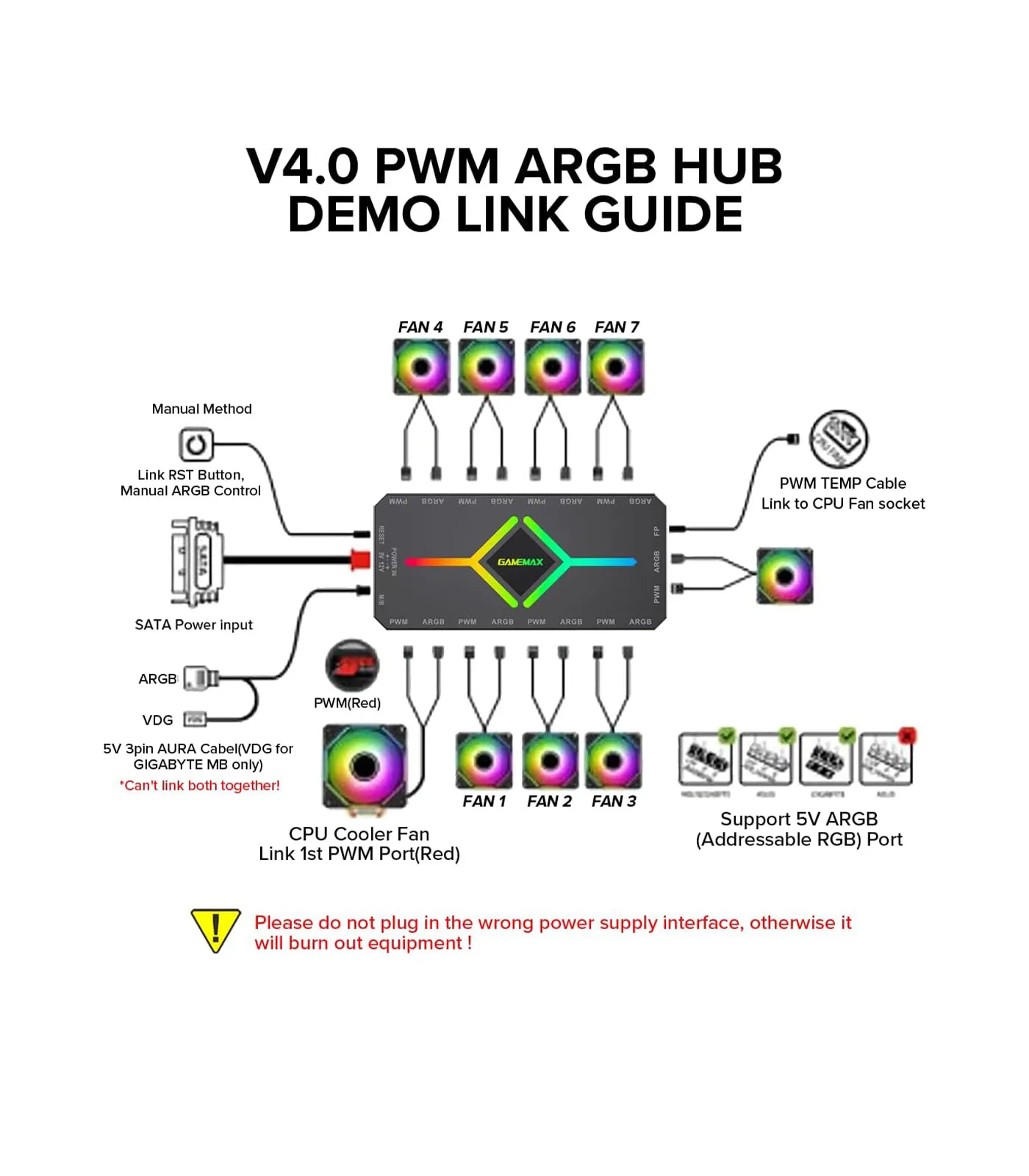 GameMax V4.0 ARGB PWM 9 Port Fan Hub With SATA Power and RF Remote