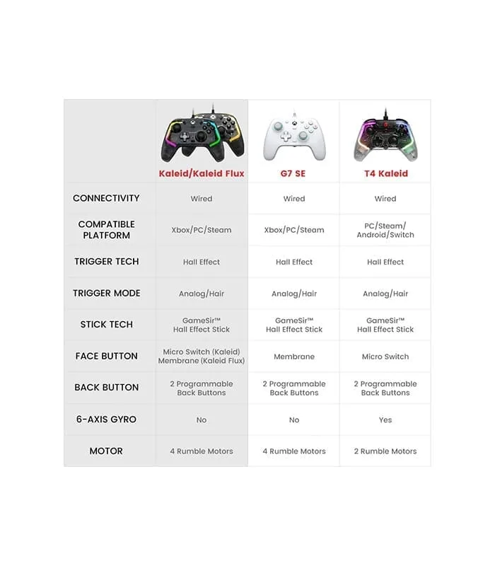 باختصار، GameSir Kaleid Flux Xbox Wired Controller هو اختيار مثالي لكل من يبحث عن وحدة تحكم سلكية تقدم أداءً عاليًا، استجابة فورية، تصميمًا مريحًا، وجودة تصنيع ممتازة — كل ذلك في وحدة واحدة جاهزة لتلبية احتياجات اللاعبين من جميع المستويات