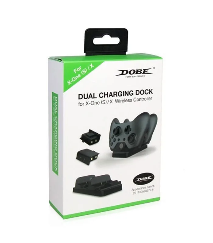قاعدة الشحن المزدوجة TYX-532 لوحدات تحكم Xbox One (S)، توفر شحنًا سريعًا وفعالًا لوحدتي تحكم في وقت واحد مع تصميم أنيق وأضواء LED لإظهار حالة الشحن.